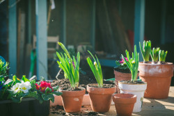 Tøm krukken for overskydende vand, og placer den på fødder eller et underlag, så vandet kan løbe fra. Alternativt kan du flytte krukkerne ind i et skur eller drivhus i frostperioder.